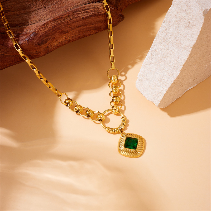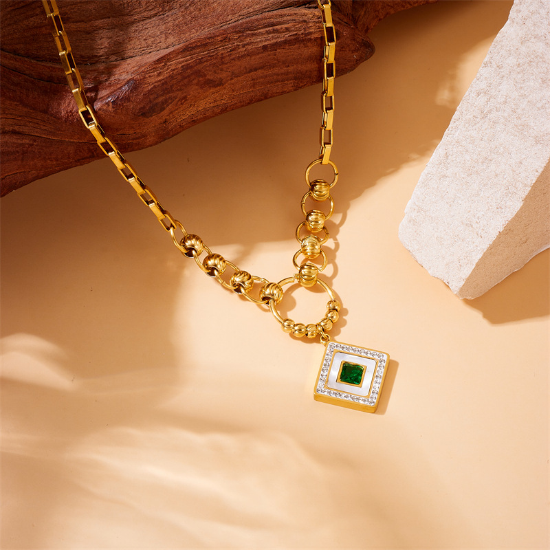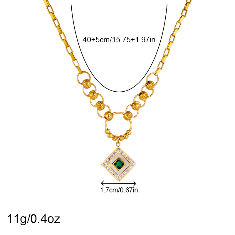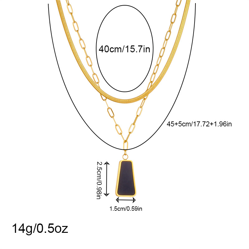 Retro gold-plated stainless steel multi-layer chain fan-shaped geometric heart pendant jewelry necklace