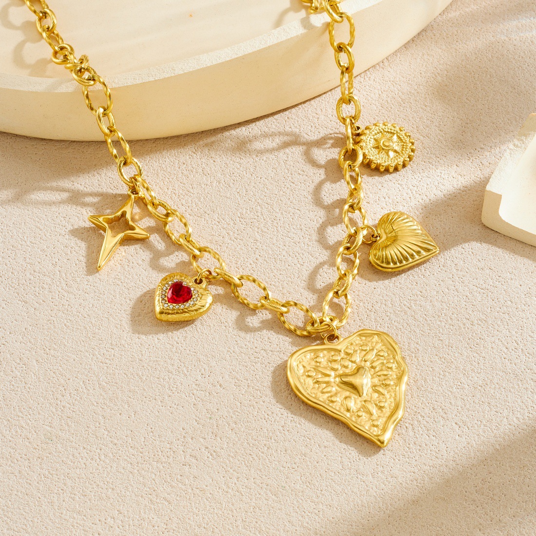Retro heavy-duty irregular heart-shaped gold-plated pendant with diamonds, star compass pendant, accessory necklace