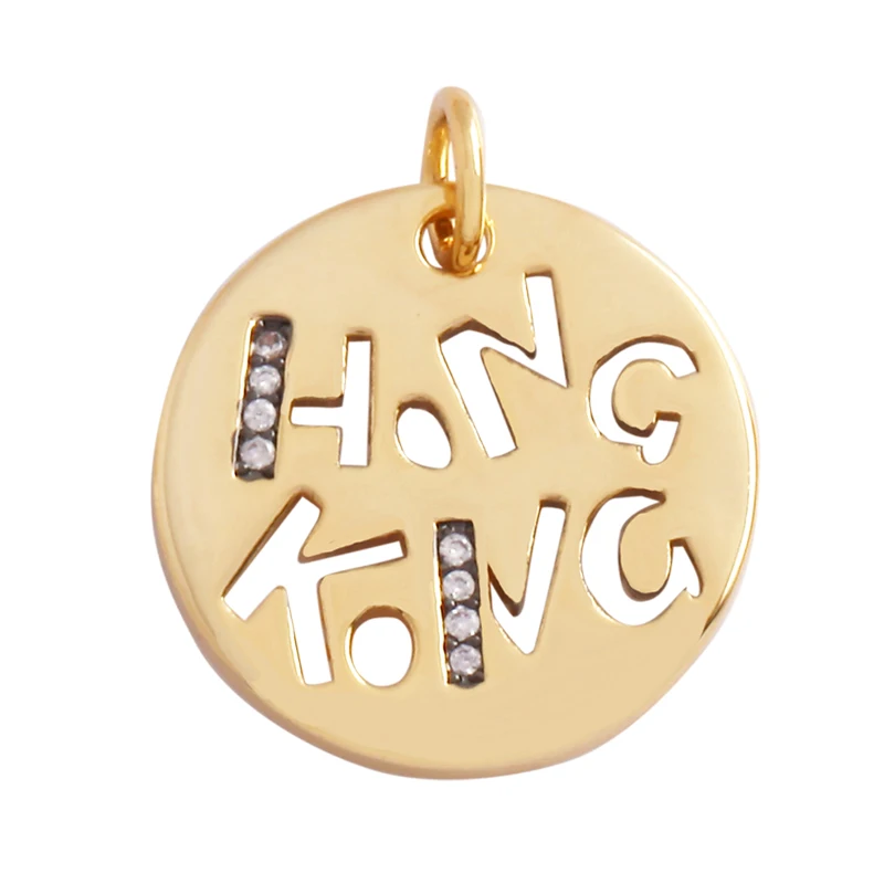 Home > Pendants and charms > Round Coin Colourful Totem Letter Charm Pendant, Honkong Lasvegas New York Hongkong Tourism 18K Real Gold Plated Colour,Necklace Bracelet for Handmade Jewelry Supplies M72