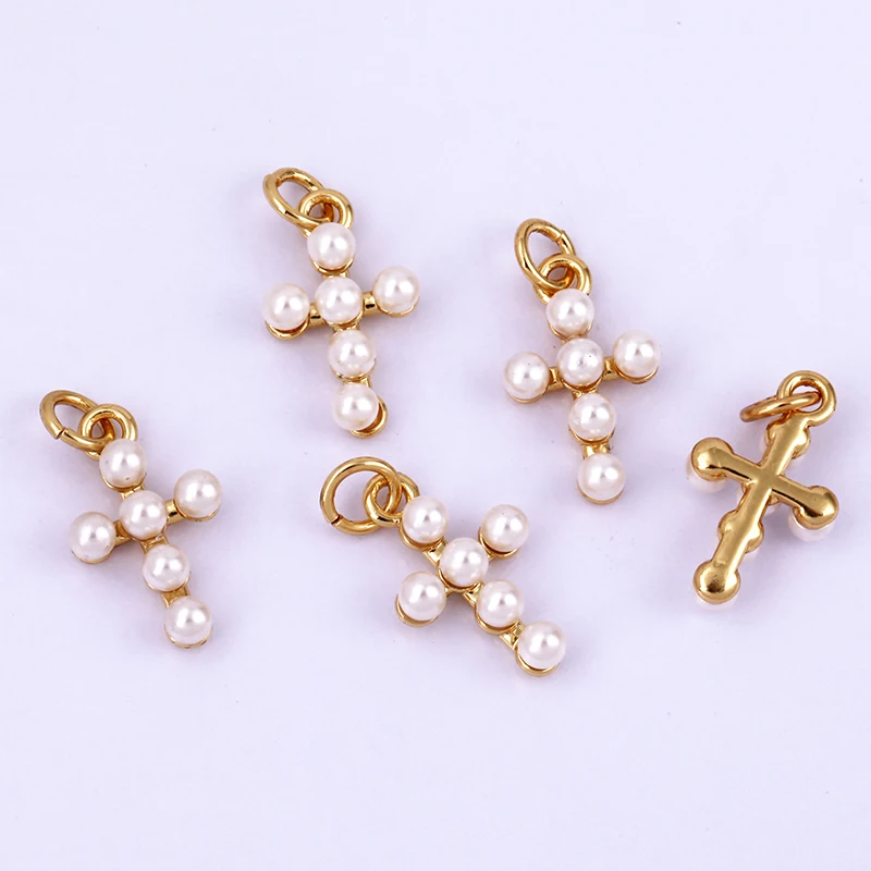 Home > New Arrival > Safety Pin Cross Pearl Charm Pendant for Necklace Bracelet Earring Attachment Handmaking Summer Christmas Jewellery Findings L36