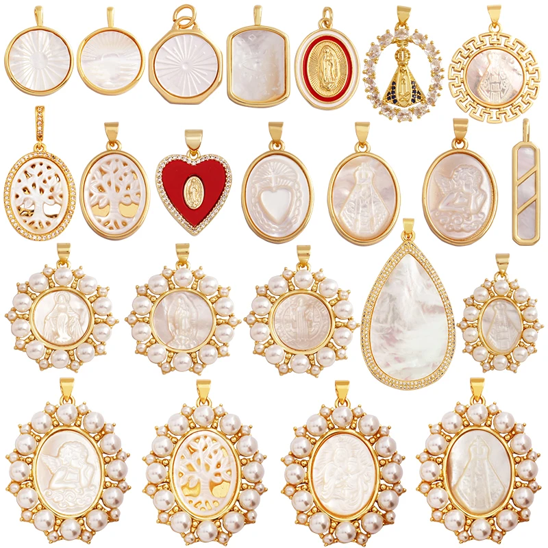 Shell Pearl 18K Gold Plated Life Tree Angel Charm Pendant,Holy Religious Jesus Virgin Mary Jewelry Necklace Accessories Supplies