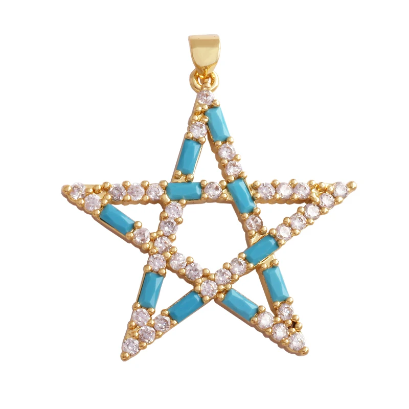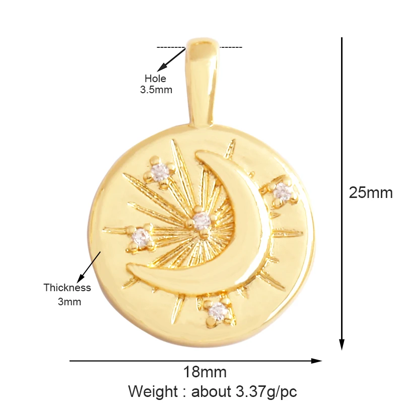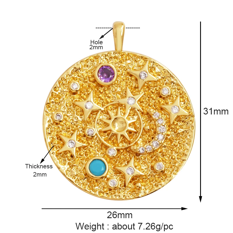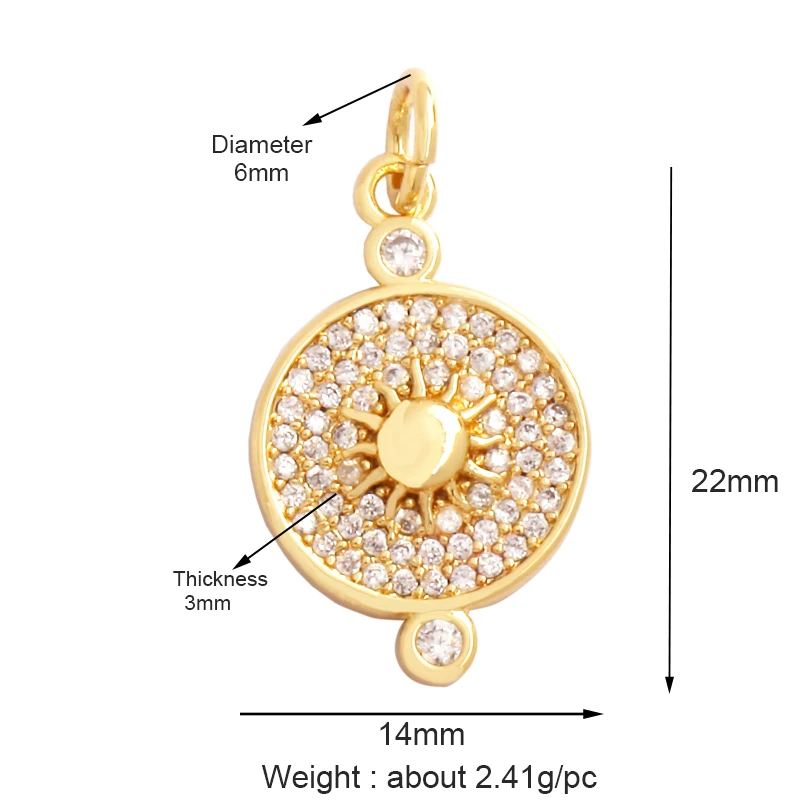 Shining Sun Star Moon Shell Charm Pendant,18K Plated Gold Inlaid Cubic Zirconia Jewelry Findings Necklace Bracelet Supplies L43