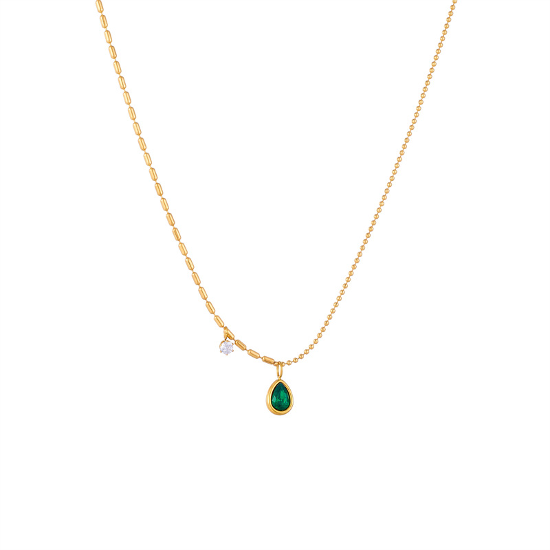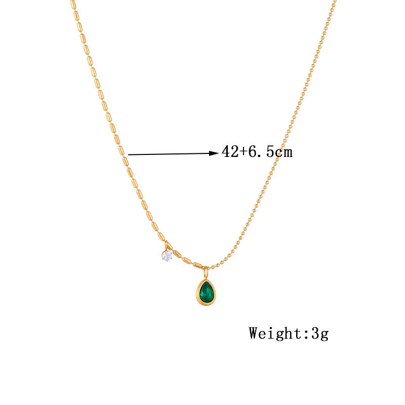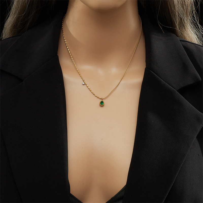 Home > New Arrival > Simple, commuter, retro, high-end, elegant clavicle chain with green diamond teardrop accessories.