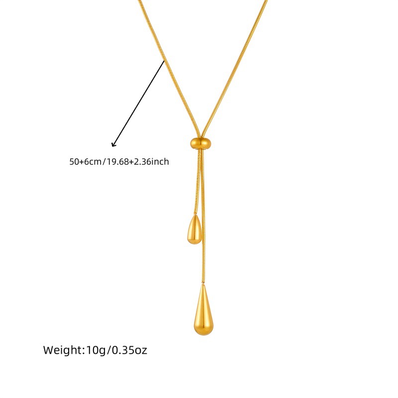 Home > New Arrival > Simple, retro, high-end metal stainless steel teardrop-shaped pull-out chain earring and necklace set