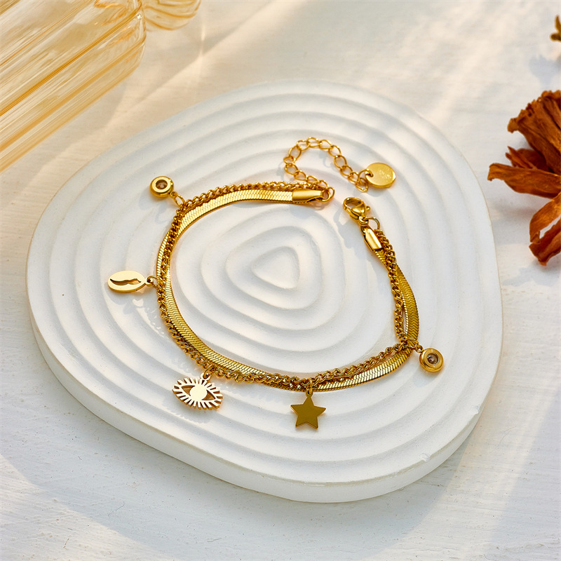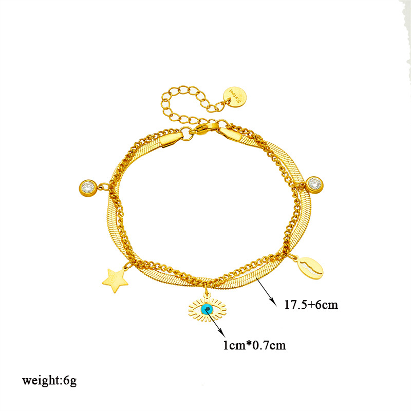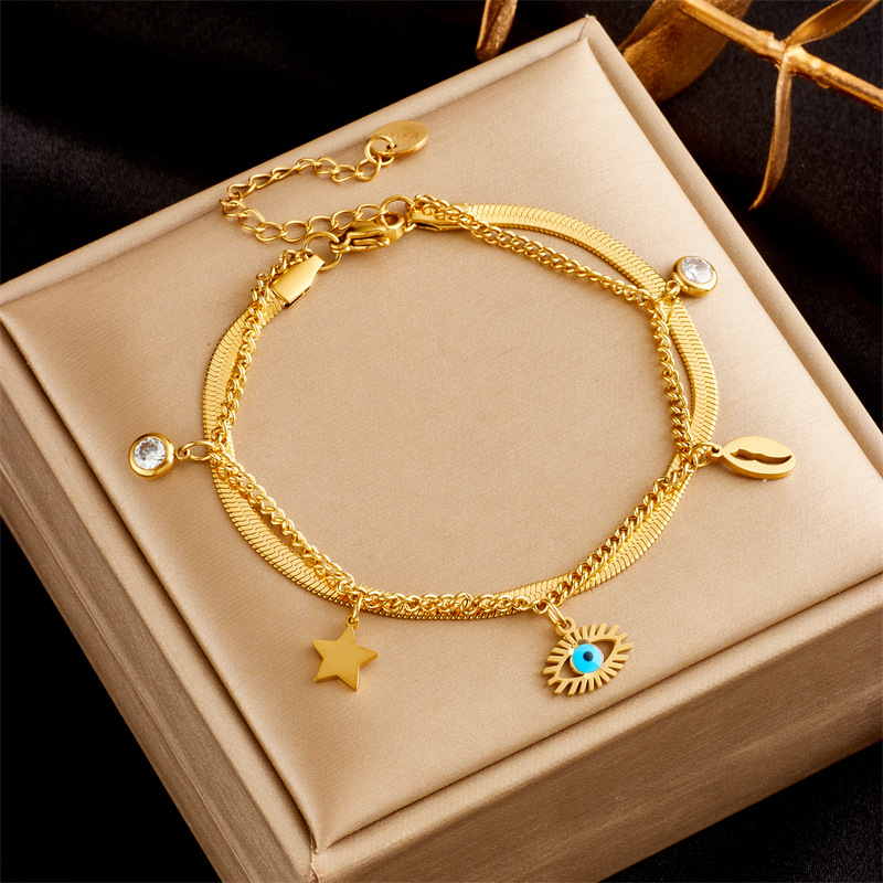 Simple and elegant multi-layered turquoise eye star rhinestone pendant necklace and bracelet set