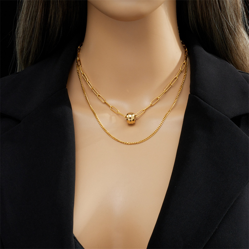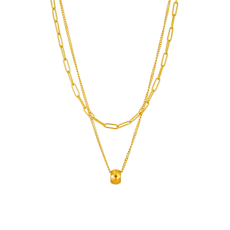 Home > New Arrival > Simple and luxurious, double-layered faceted beaded pendant chain titanium steel necklace