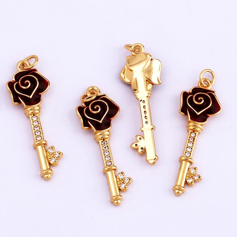Home > Pendants and charms > Sports Sneakers Skis Surfboard Key Flower Cubic Zirconia CZ Paved Charm,18K Real Gold Plated Colour , Craft Jewelry Supplies L87