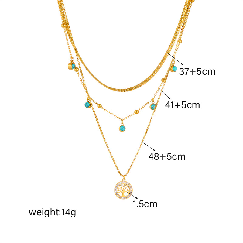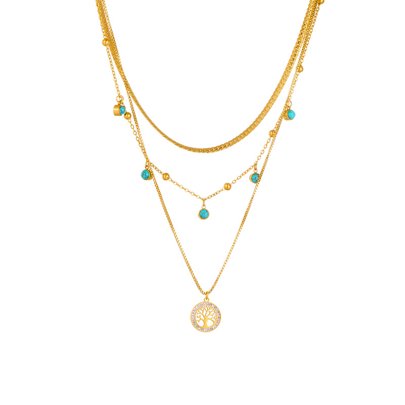 Home > New Arrival > Stylish, elegant, minimalist design, multi-layered clavicle necklace with tree of life turquoise pendant, titanium steel necklace.