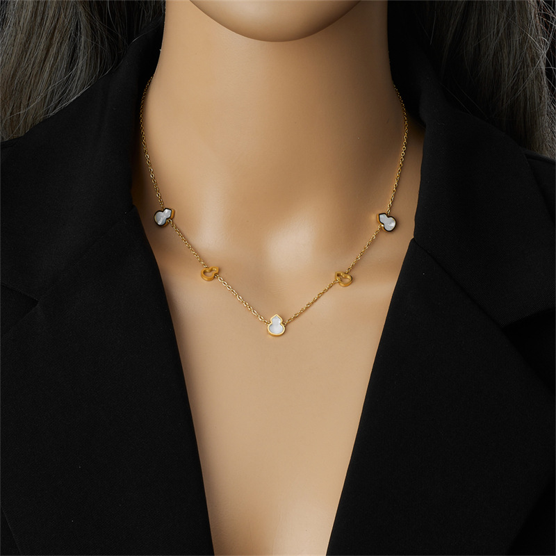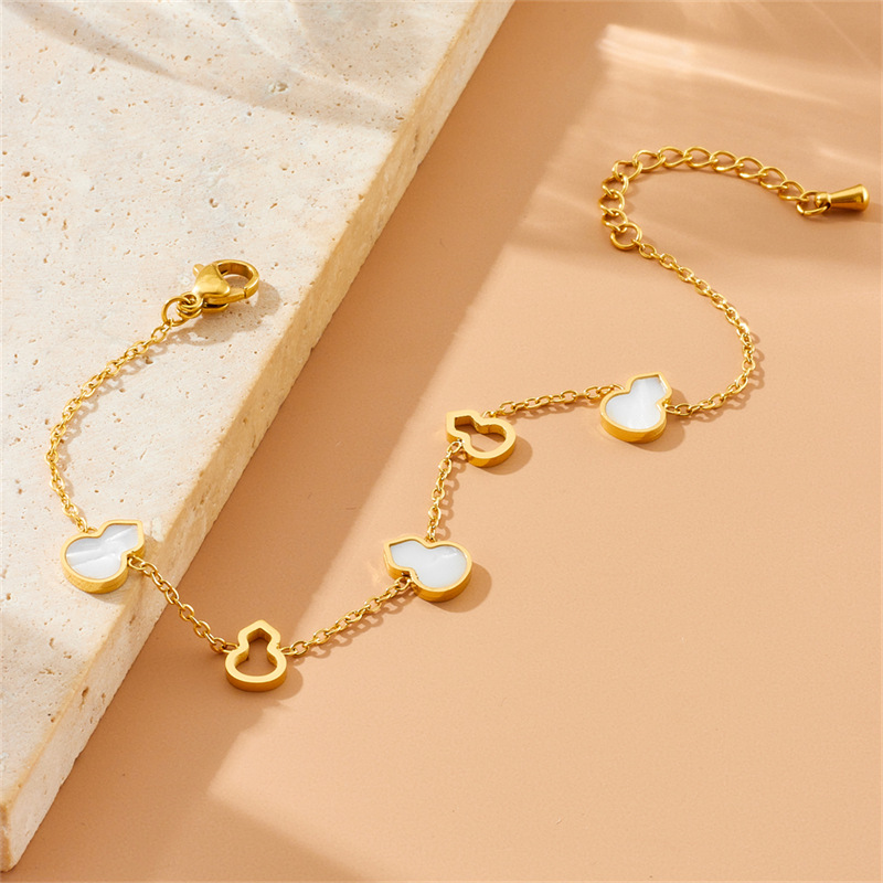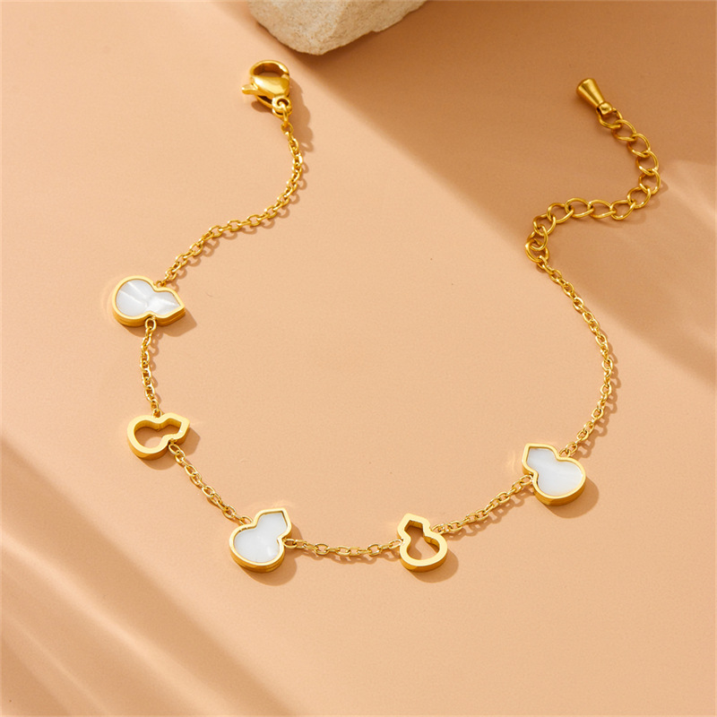Stylish, minimalist, elegant hollowed-out white mother-of-pearl gold-plated stainless steel gourd accessories chain, new Chinese style bracelet, earrings, necklace