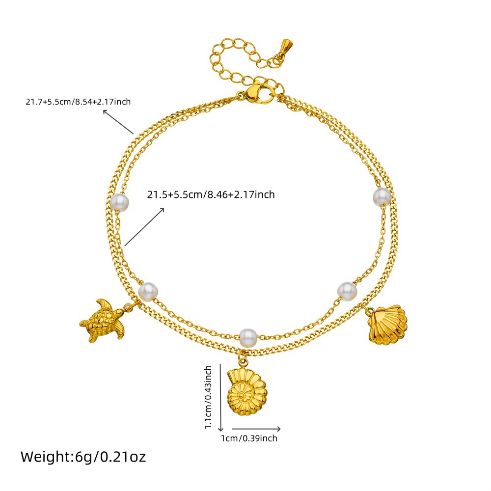 Home > New Arrival > Stylish and simple colorful shimmering seashell and butterfly double-layered beach style stainless steel chain pearl starfish anklet