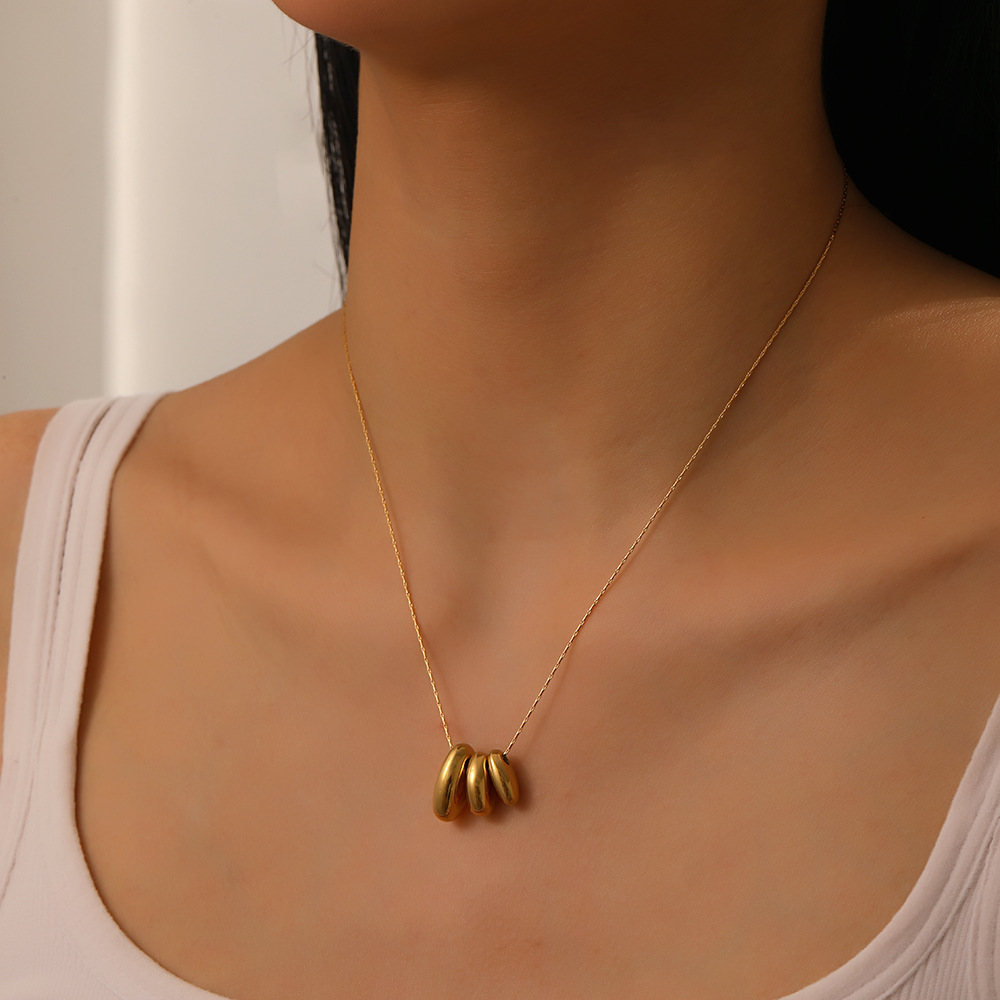 Stylish and simple multi-strand geometric pendant, gold-plated chain, stainless steel, versatile jewelry, clavicle necklace for women.
