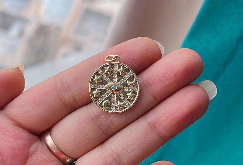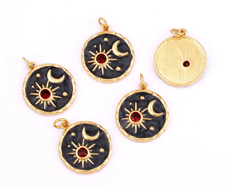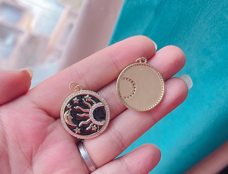 Sun Moon Star Celestial Charm Pendant,Real Gold Plated Cubic Zirconia CZ Paved,Jewelry Necklace Bracelet Accessories Supply M17