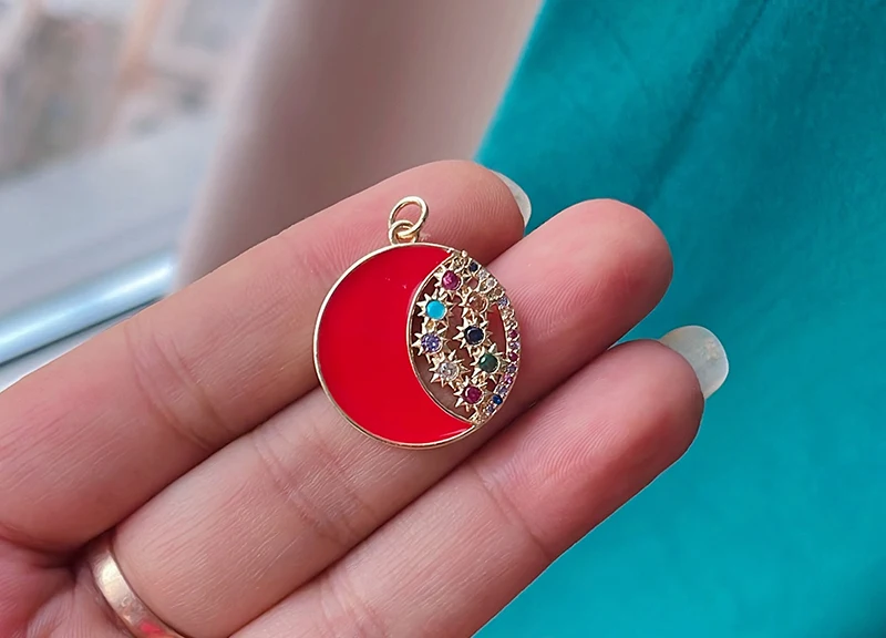 Home > Sun Moon Star Celestial Charm Pendant,Real Gold Plated Cubic Zirconia CZ Paved,Jewelry Necklace Bracelet Accessories Supply M17