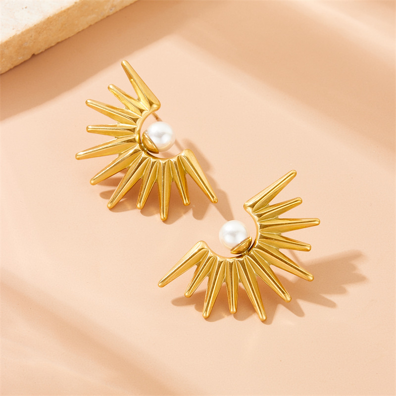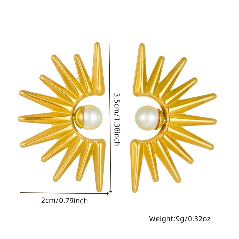 Home > New Arrival > Sunflower pearl pendant clavicle chain stainless steel necklace, earrings, and ring three-piece set