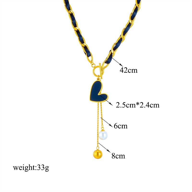 Titanium steel black and gold two-tone chain heart-shaped tassel pendant jewelry with a minimalist style