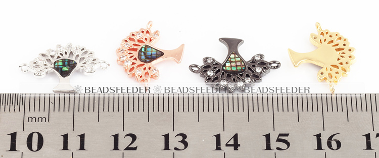 Home > Findings > Link connectors > Tree of life connector micro paved with abalone shell chips,CZ findinging/Cubic Zirconia connector ,Rose Gold/black/Silver colour, 19x14x2mm
