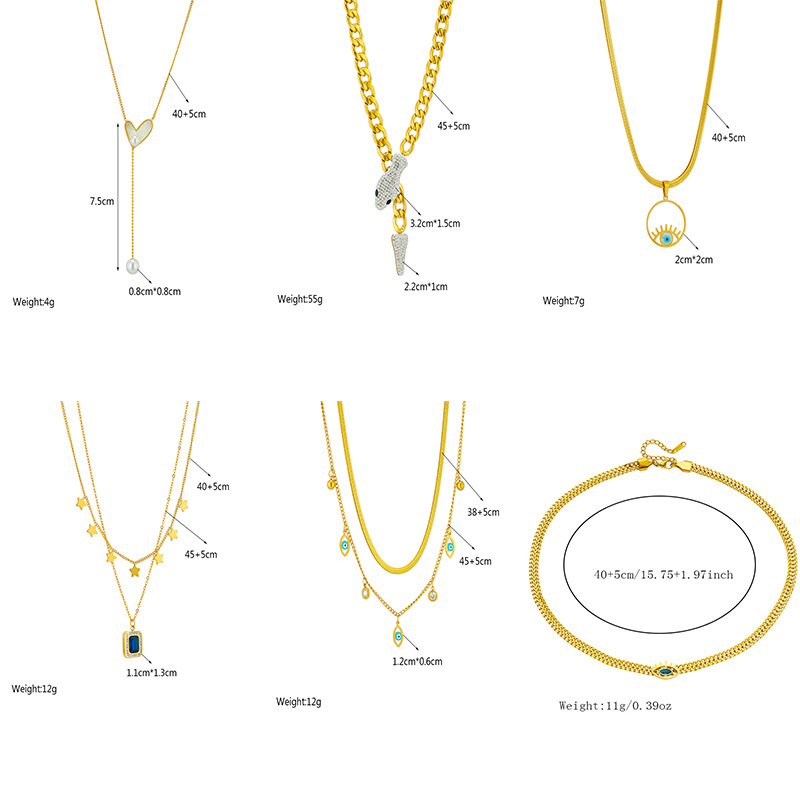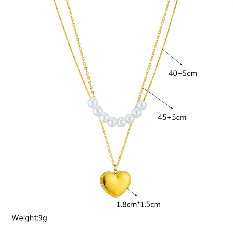 Home > New Arrival > Trendy, niche, new minimalist double-layered heart-shaped diamond square pearl round pendant necklace with eye design.