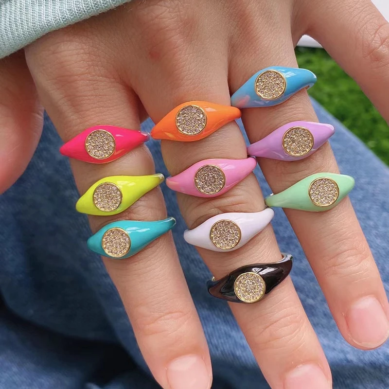 Home > Fashion Jewelry > Trendy Colourful Enamel Coated Zircon Finger Ring,Simple Neon Multicolor Brass Gold Plated Rings Charm Jewelry Findings Supply P33