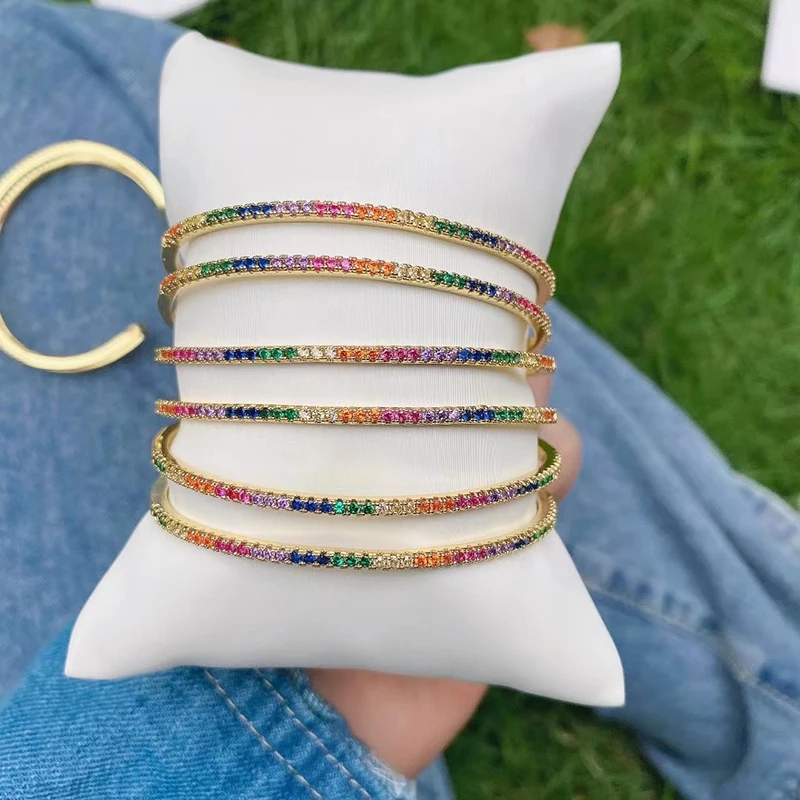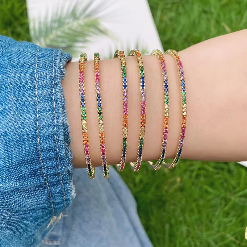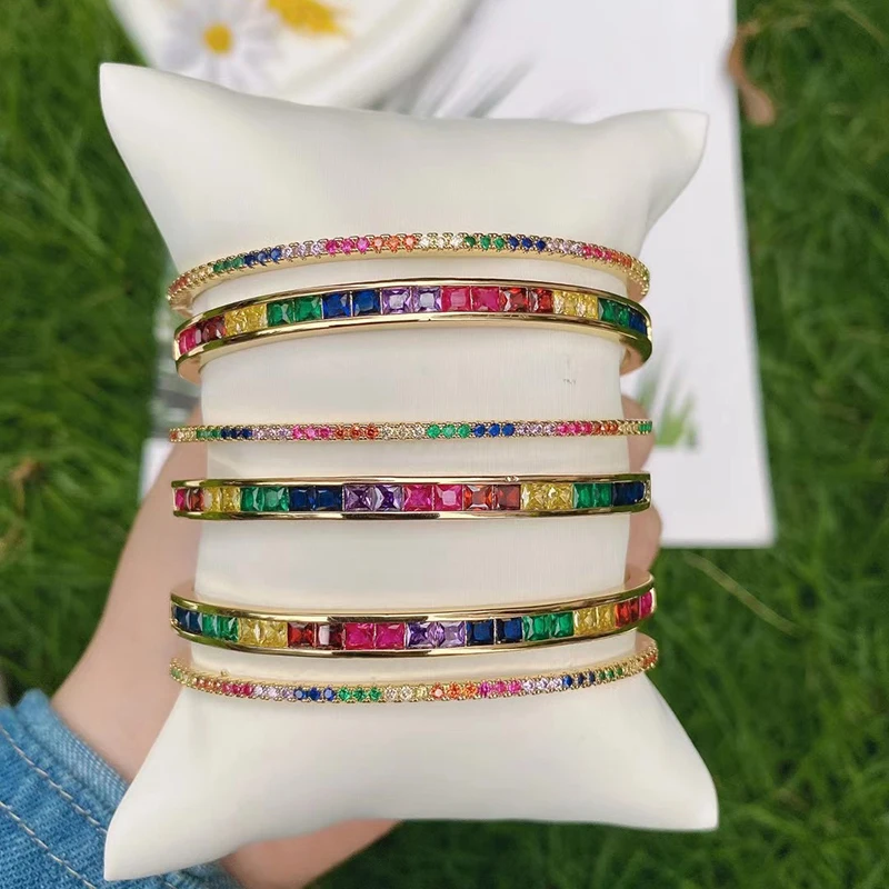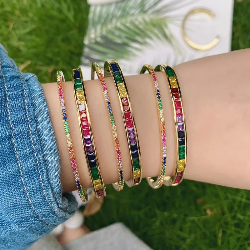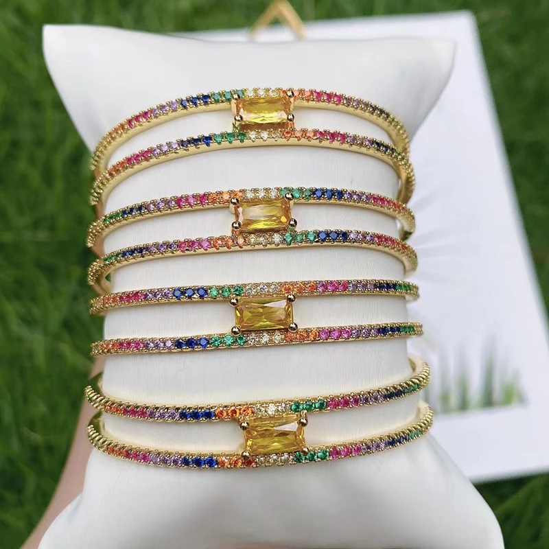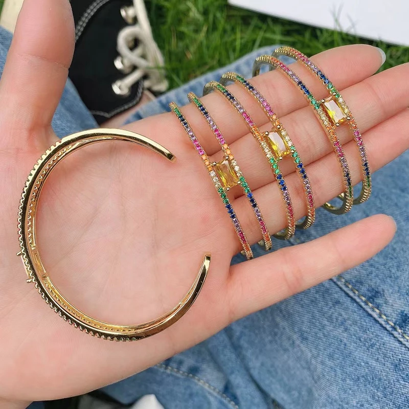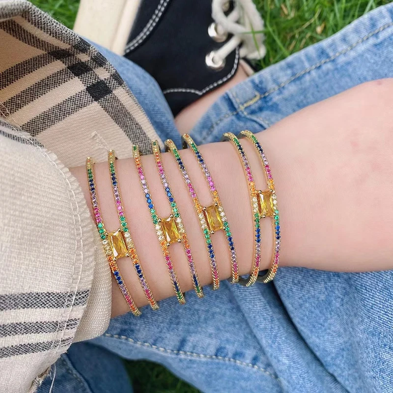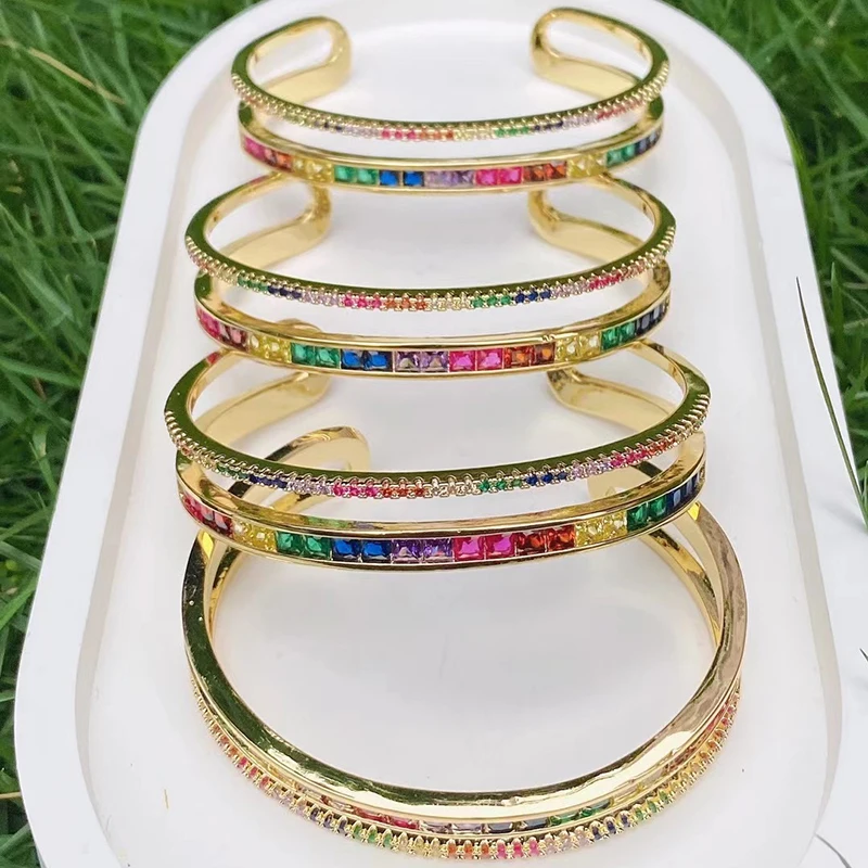 Trendy Double-deck Style 18K Plated Brass Rainbow Zircon Bracelets,Exquisite Luxury Multi Shape Crystal Bangle Charm Jewelry M60