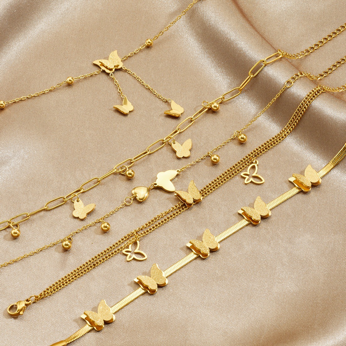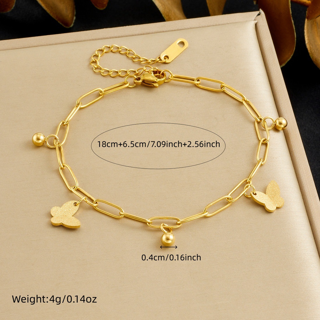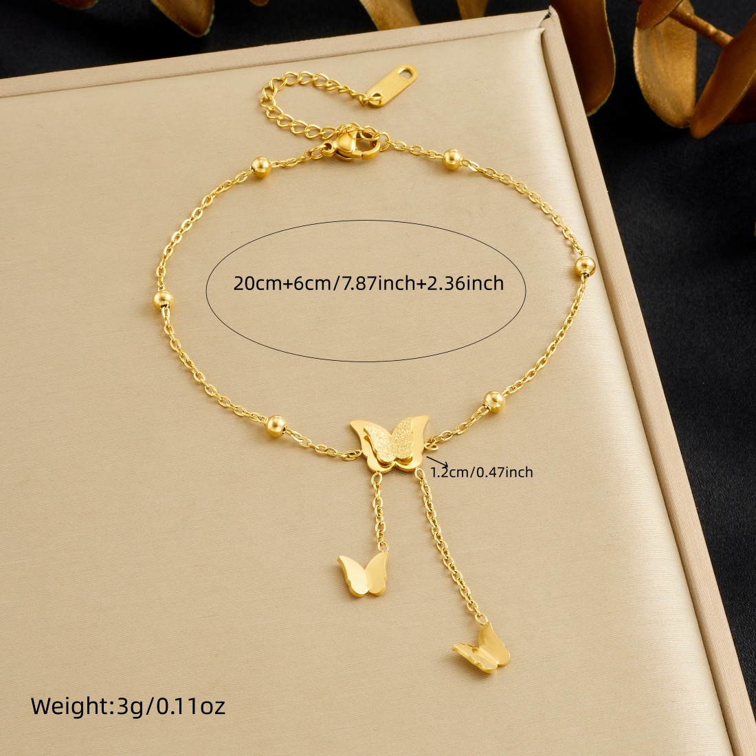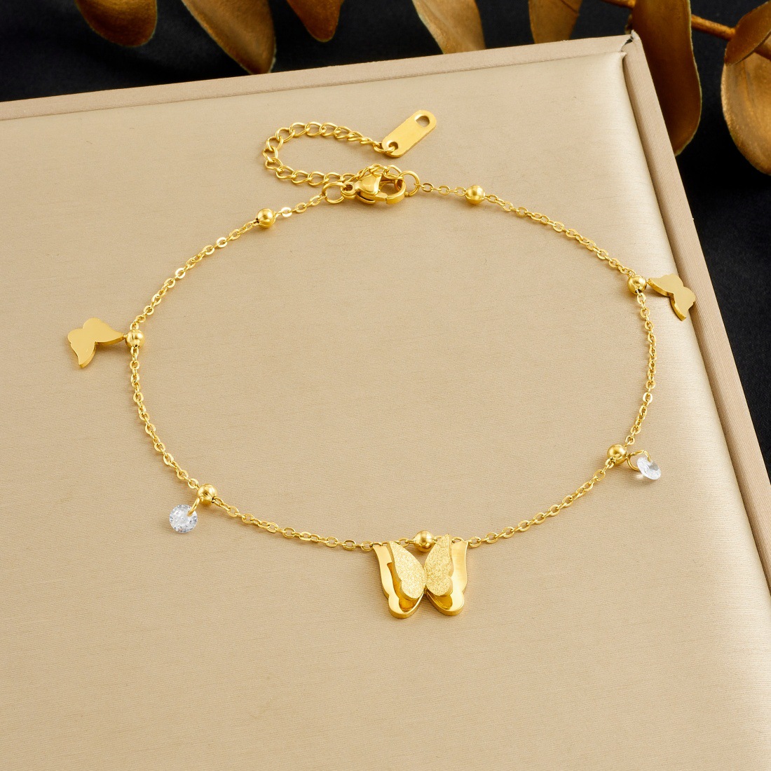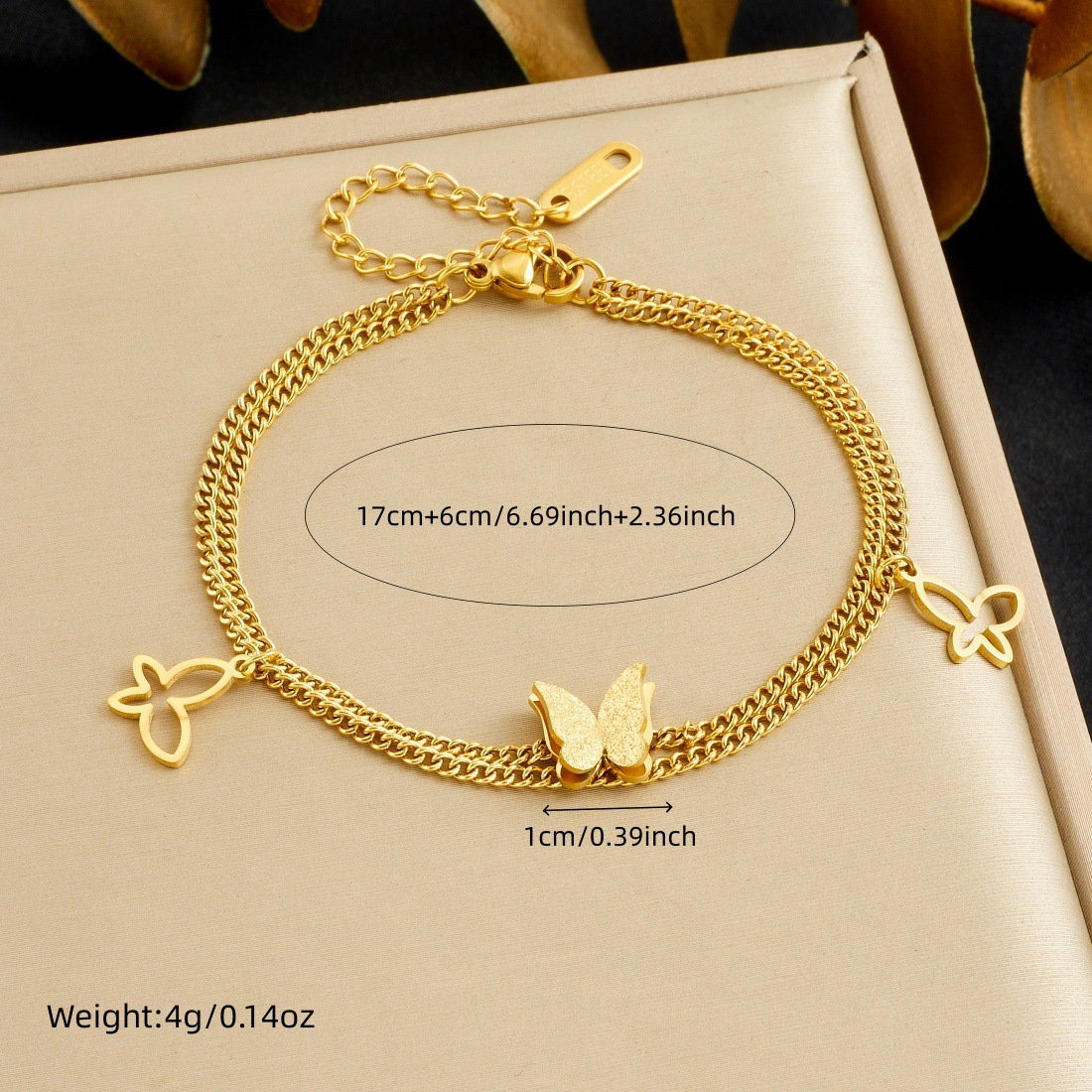 Home > New Arrival > Trendy frosted 3D butterfly gold-plated bracelet, versatile everyday accessory, stainless steel jewelry.