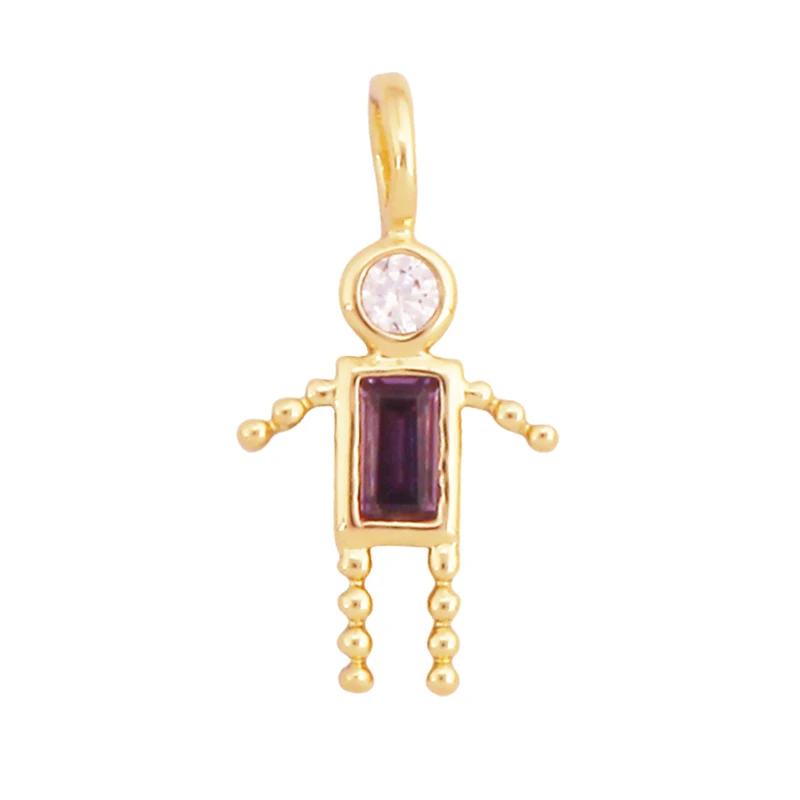 Trendy Love Boy Girl Birthstone Cubic Zirconia Charm Pendant,Real 18K Gold Necklace Bracelet for DIY Handmade Jewelry Supply S04