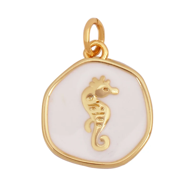 Trendy Ocean Scallop Starfish Dolphin Seahorse Charm Necklace Pendant,Multicolor Enamel Summer Beach Holiday Jewelry Supply K80
