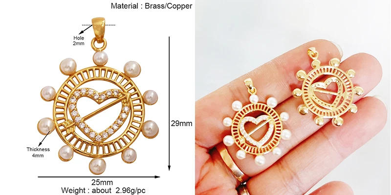 Home > Pendants and charms > Trendy Rainbow Zircon Pearl Shell Love Heart Charm Pendant,Creative Angel 18K Gold Plated Jewelry Findings Accessories Supplies K42