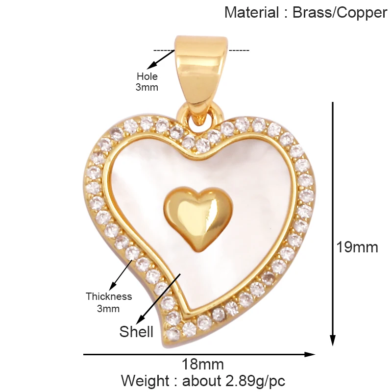 Trendy Rainbow Zircon Pearl Shell Love Heart Charm Pendant,Creative Angel 18K Gold Plated Jewelry Findings Accessories Supplies K42