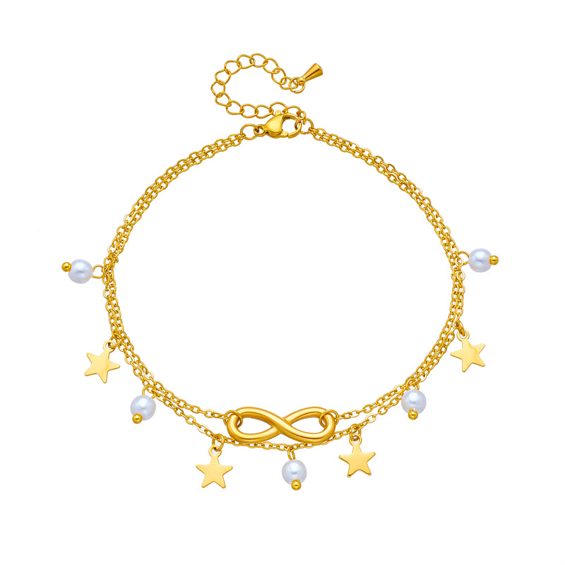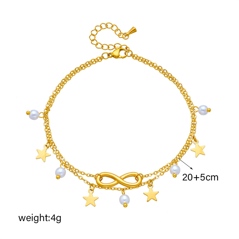 Trendy retro beach style multi-layered personalized tassel figure 8 five-pointed star pendant metal anklet