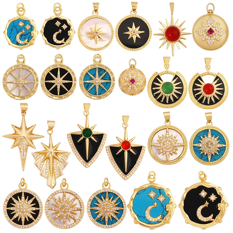Trendy Shining Space Sun Moon Star Shell Charm Pendant,Real 18K Gold Plated Jewelry Components Findings Accessories Supplies S24