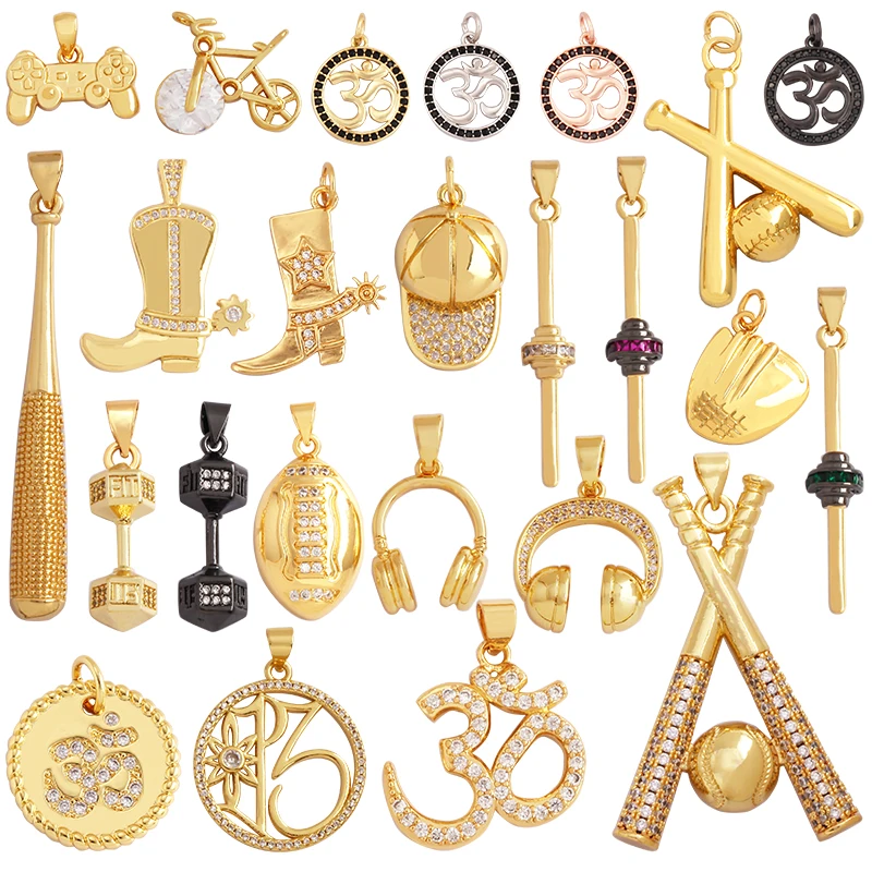 Trendy Sports Baseball Dumbbell Yoga Men's Boots Zirconia Paved Cloth Charm Pendant,18K Gold Necklace Craft Jewelry Supply L99