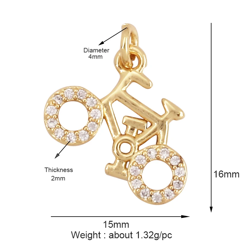 Home > Pendants and charms > Trendy Sports Sneakers Skis Surfboard Bike Cubic Zirconia CZ Paved Charm Pendant, 18K Gold Necklace Craft Jewelry Supplies M26