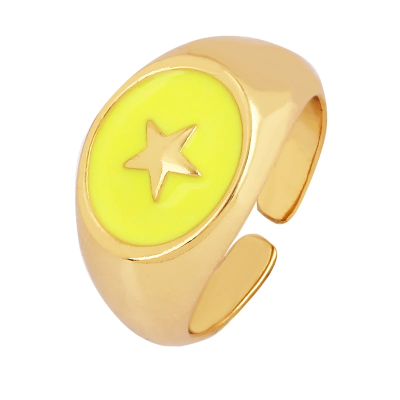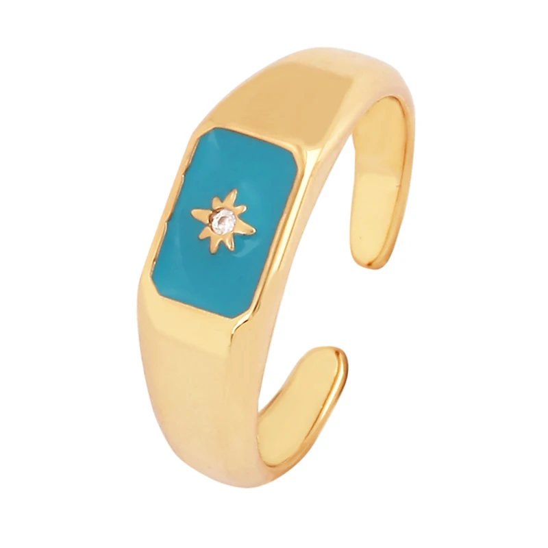 Home > Trendy Star Moon 18K Gold Plated Finger Ring,Colourful Enamel Coated Zircon Open Adjustable Rings Jewelry Findings Supplies P34