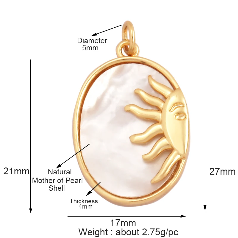 Trendy Sun Apollo Moon Star Shell Charm Pendant,Real Gold Plated Cubic Zirconia Paved,Jewelry Necklace Bracelet Accessories M56