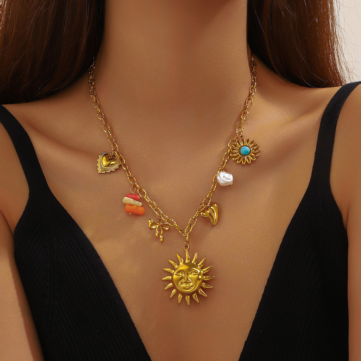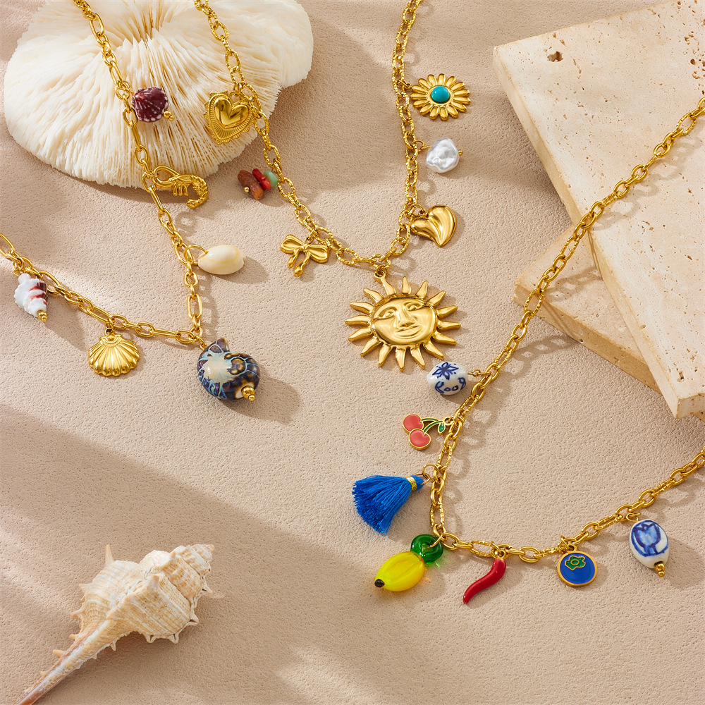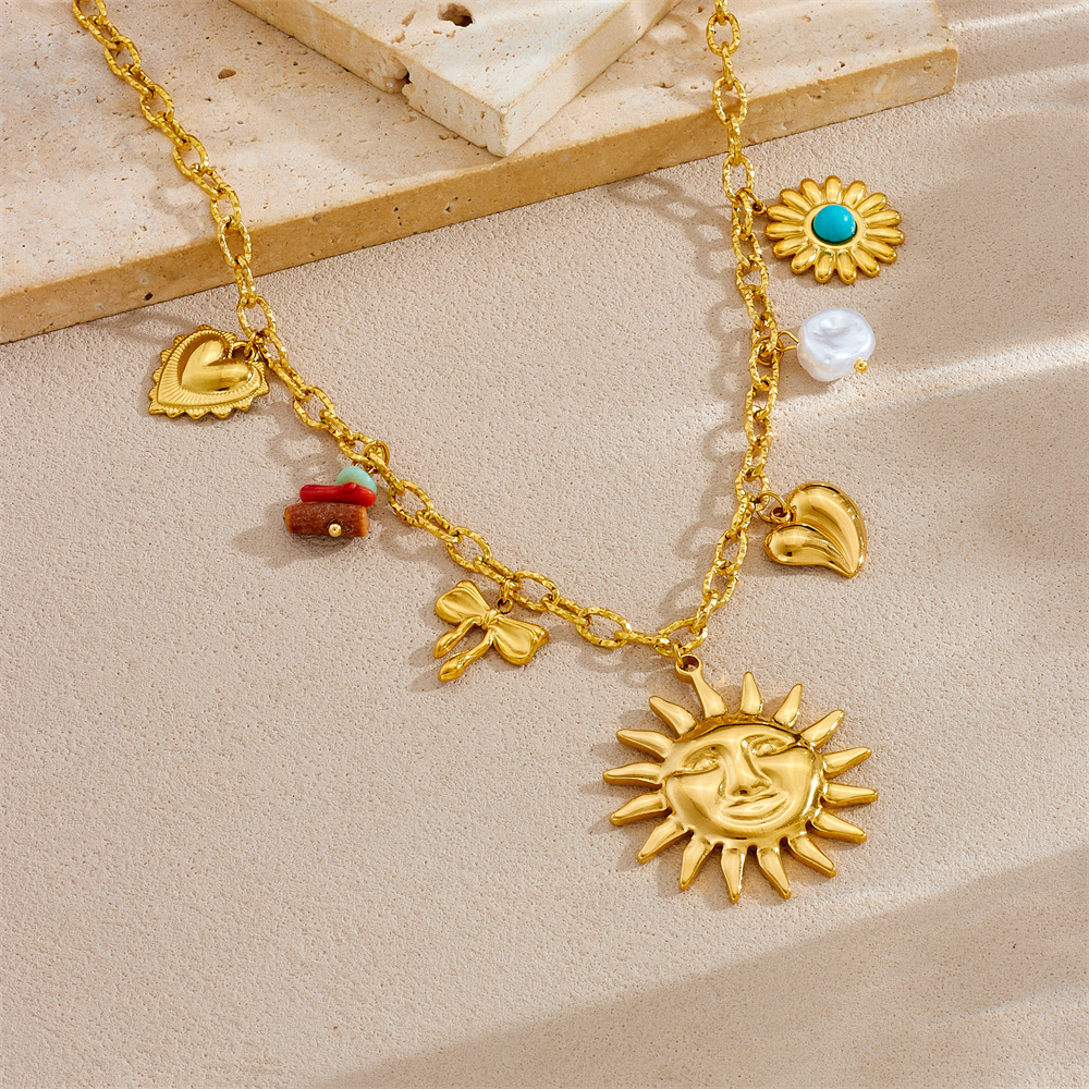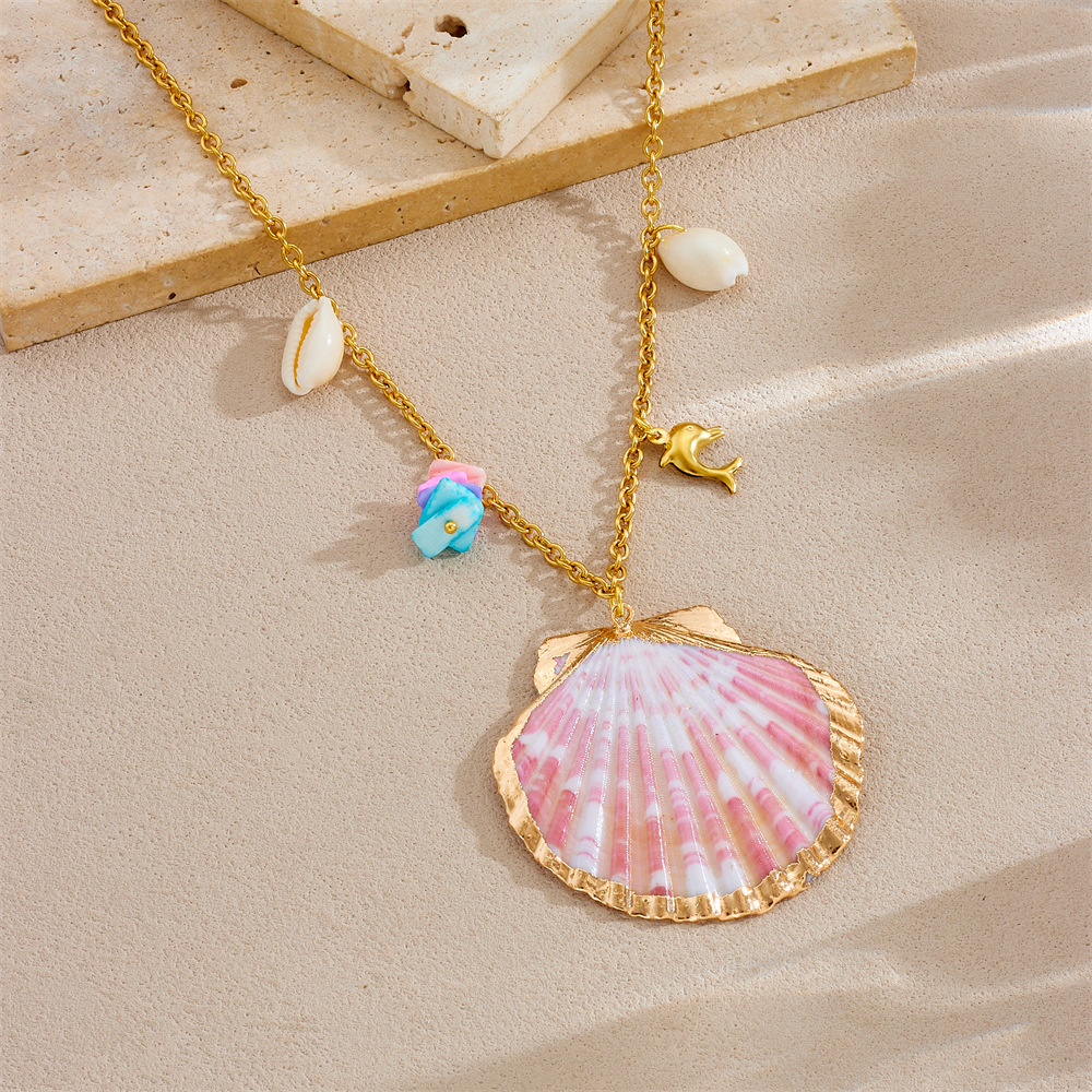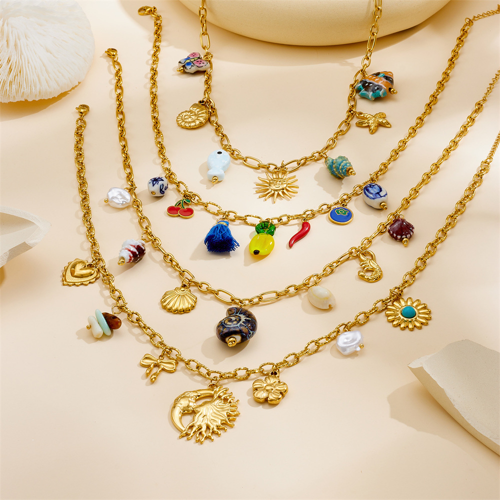 Home > New Arrival > Vacation high-end multi-element marine life pendant seashell starfish sun stainless steel necklace