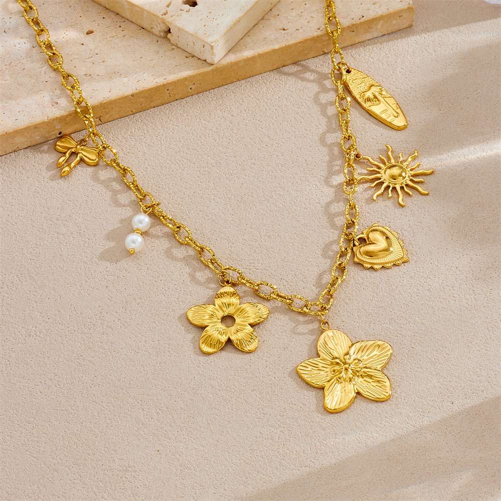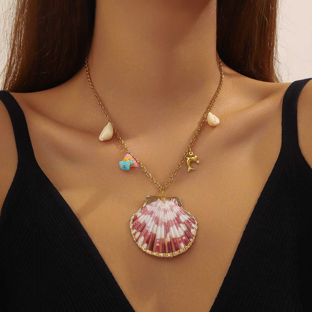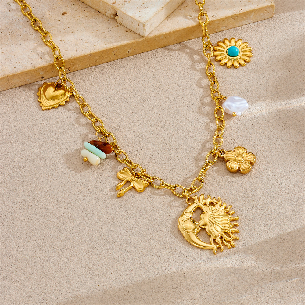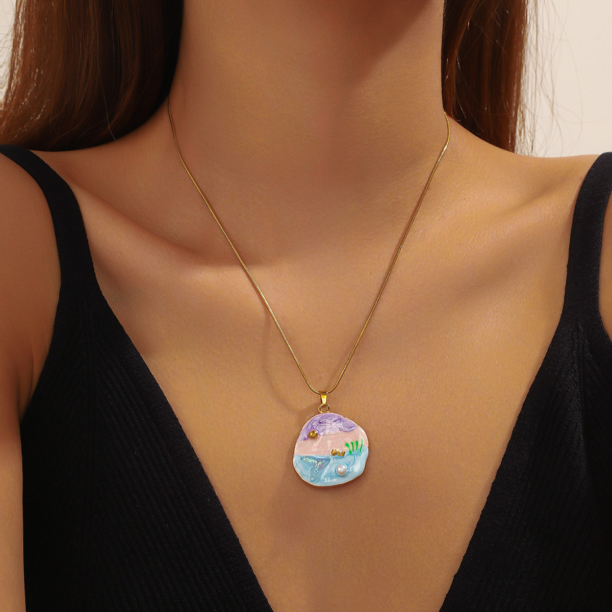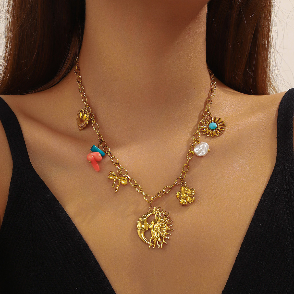 Home > New Arrival > Vacation high-end multi-element marine life pendant seashell starfish sun stainless steel necklace