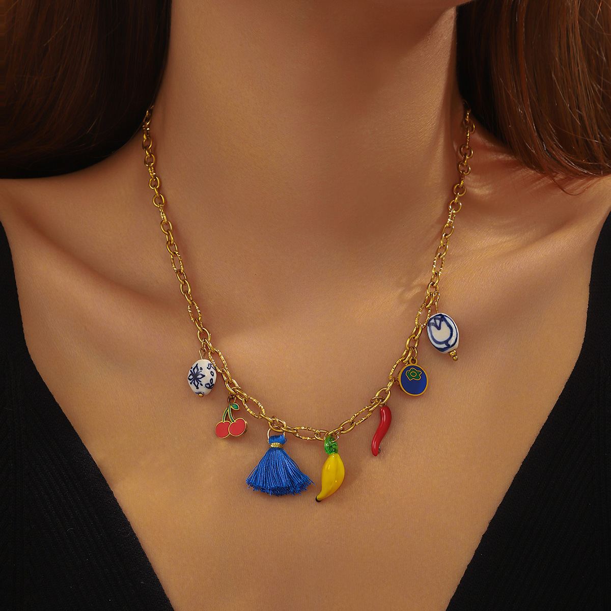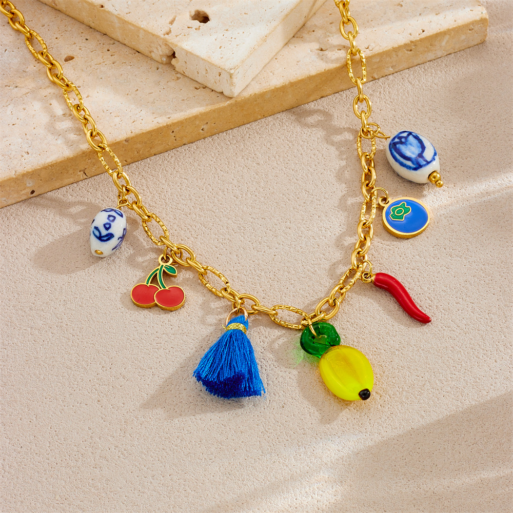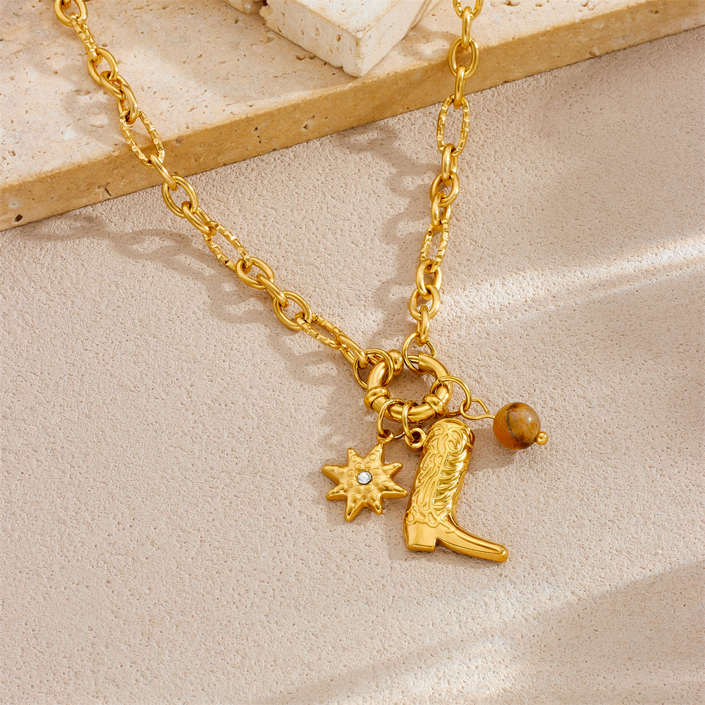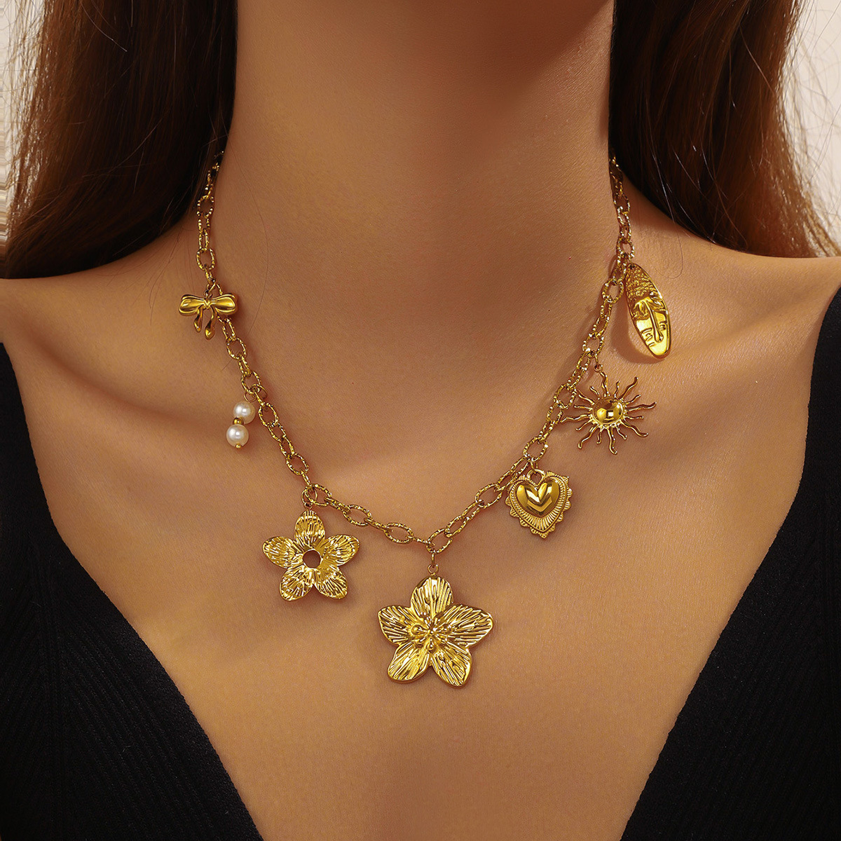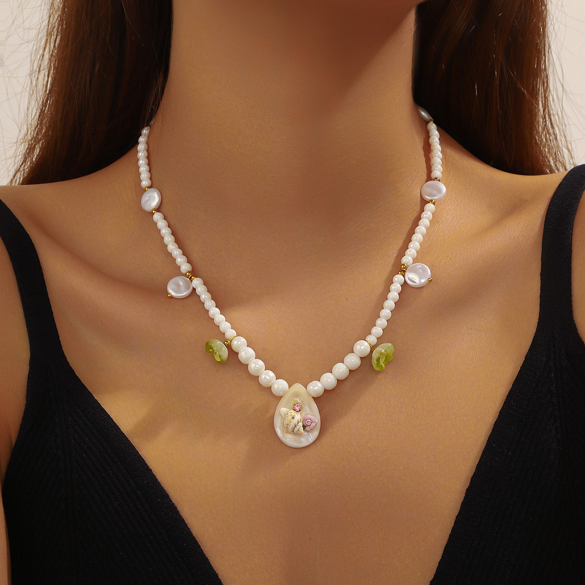 Home > New Arrival > Vacation high-end multi-element marine life pendant seashell starfish sun stainless steel necklace