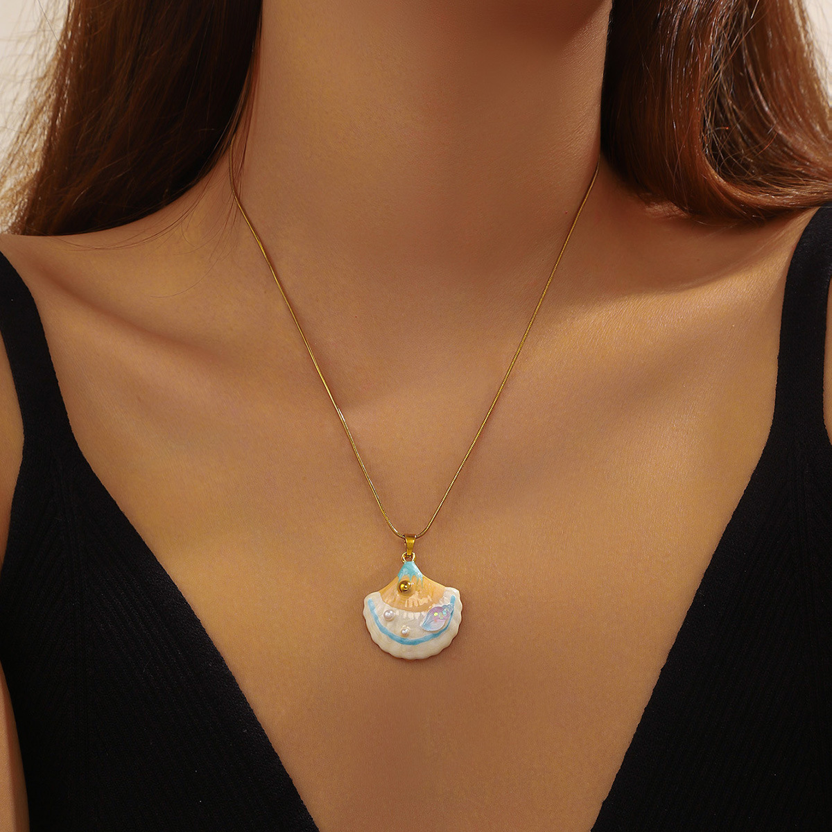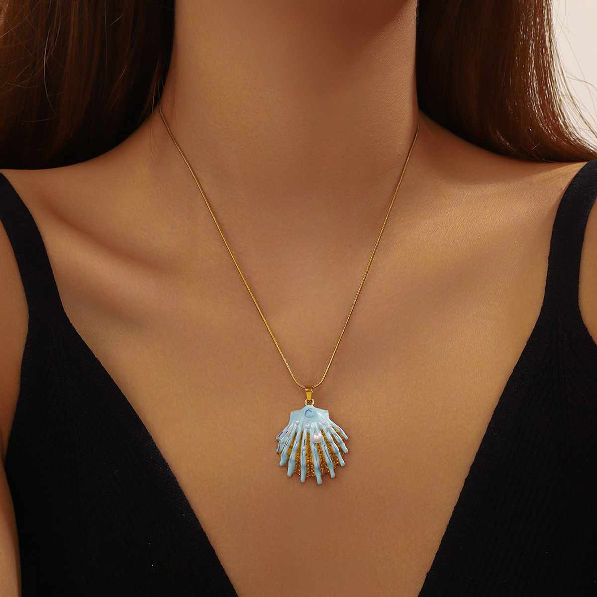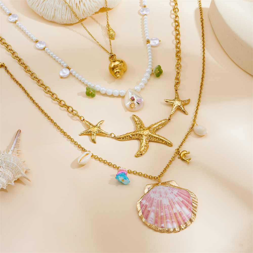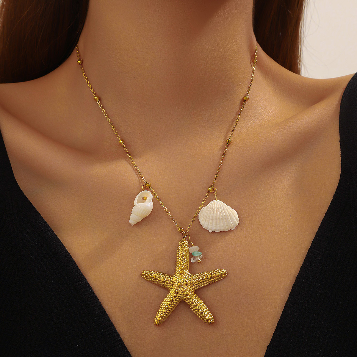 Vacation high-end multi-element marine life pendant seashell starfish sun stainless steel necklace