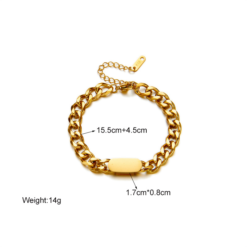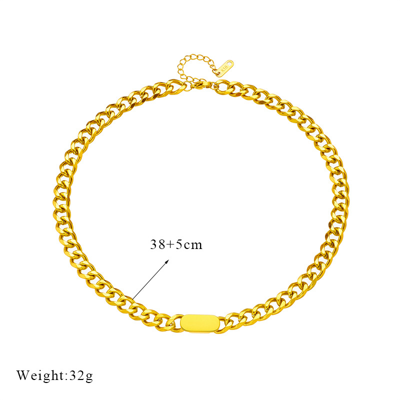 Versatile gold titanium steel hip-hop style chunky necklace and bracelet for men and women, minimalist and sophisticated jewelry set