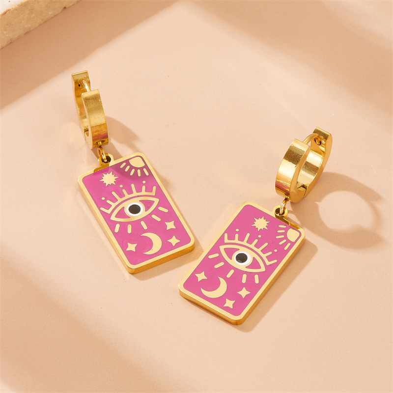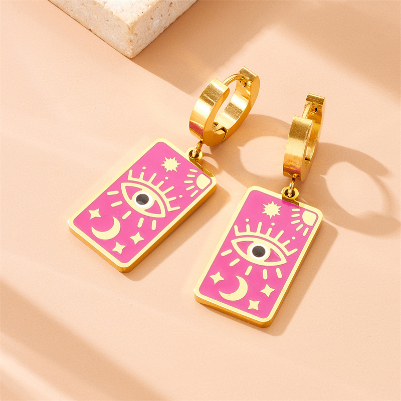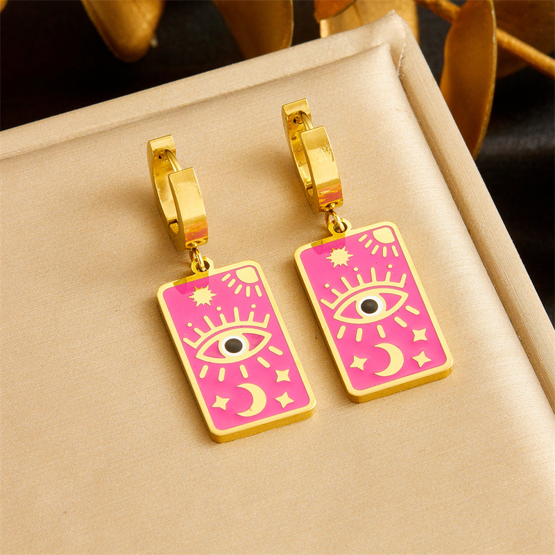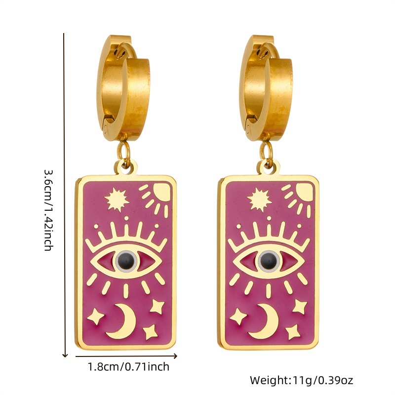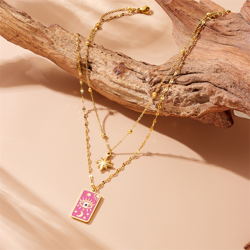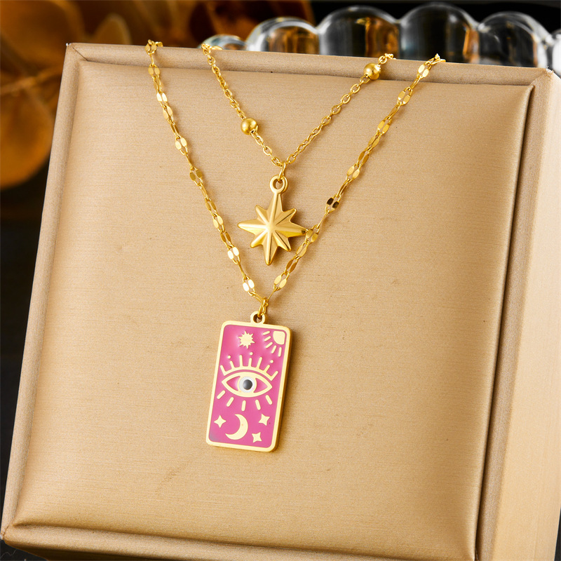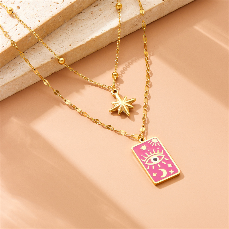 Vintage square dripping eye of God earrings pendant double-layer necklace stacked star and moon clavicle chain jewelry set